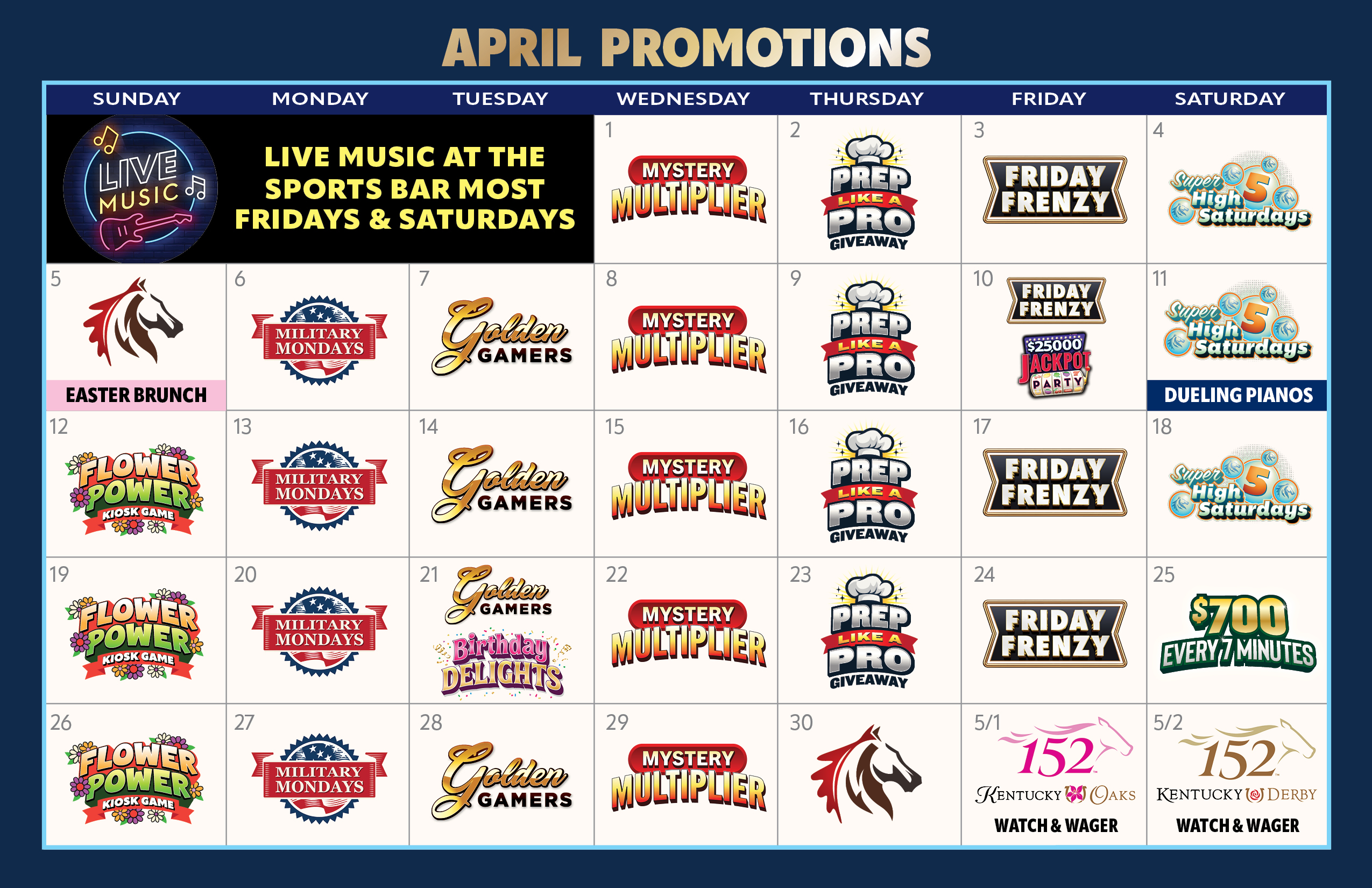 Saturday, April 25 • Win a share of up to $67,000 in cash & Free Play with $700 Every 7 Minutes!